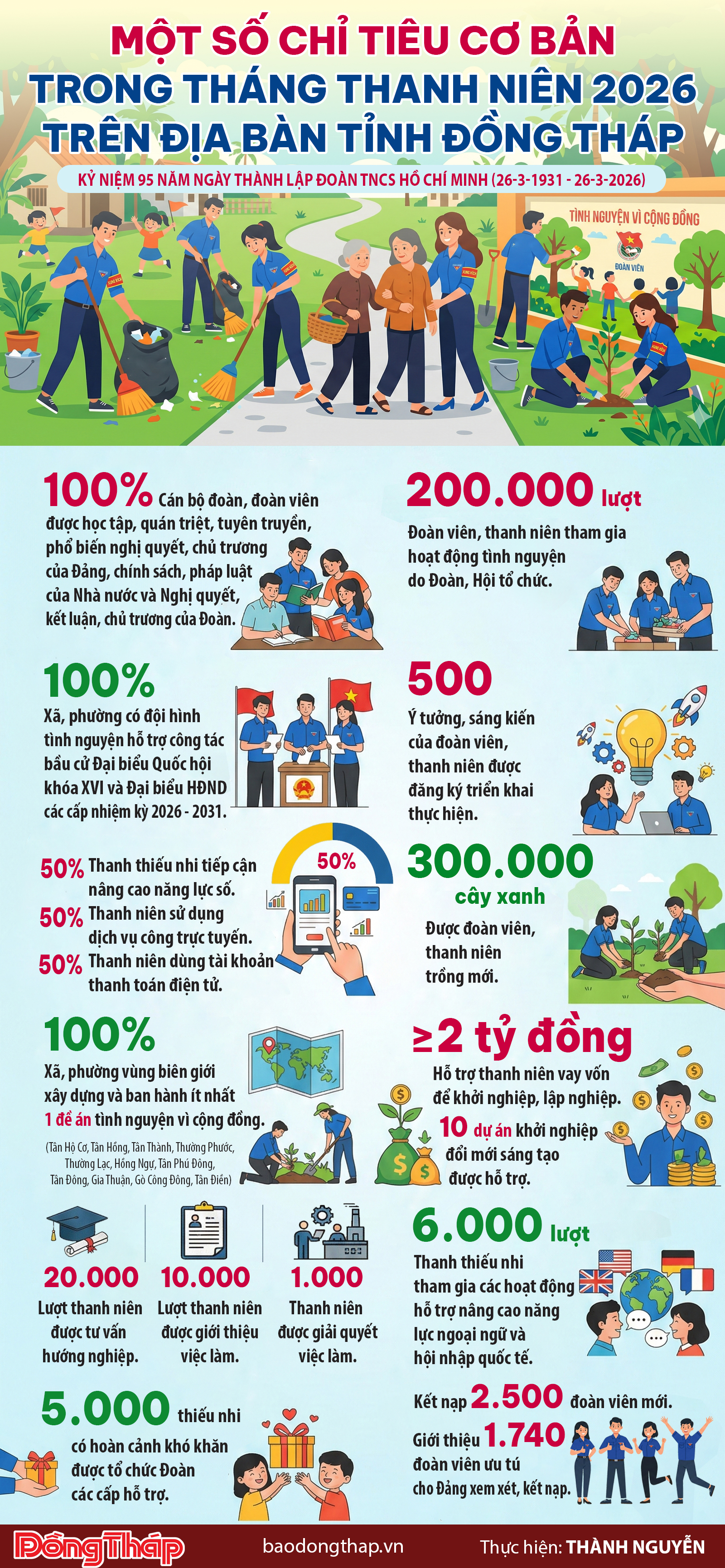[Infographic] Một số chỉ tiêu cơ bản trong Tháng Thanh niên 2026 trên địa bàn tỉnh Đồng Tháp