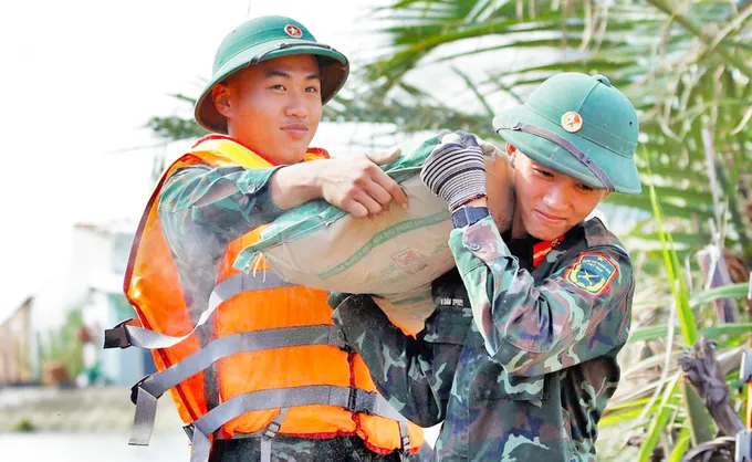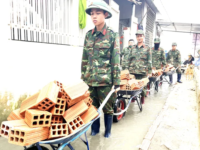 Tại thôn Vinh Quang 2 (xã Tuy Phước Đông, Gia Lai), Quân đoàn 34 (Bộ Quốc phòng) đang huy động lực lượng bám chốt gần 30 ngày, giúp người dân xây mới nhà sau bão lũ. Do địa hình phức tạp, nhiều khu dân cư biệt lập giữa sông nước, rừng ngập mặn nên bộ đội đã huy động ghe, xuồng để vận chuyển vật liệu xây dựng, hỗ trợ người dân xây nhà “thần tốc”.