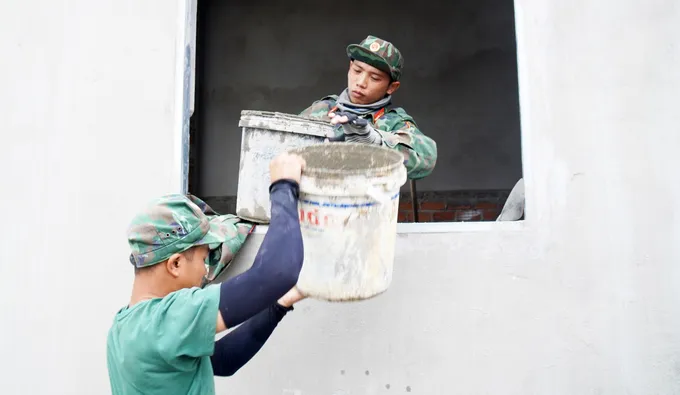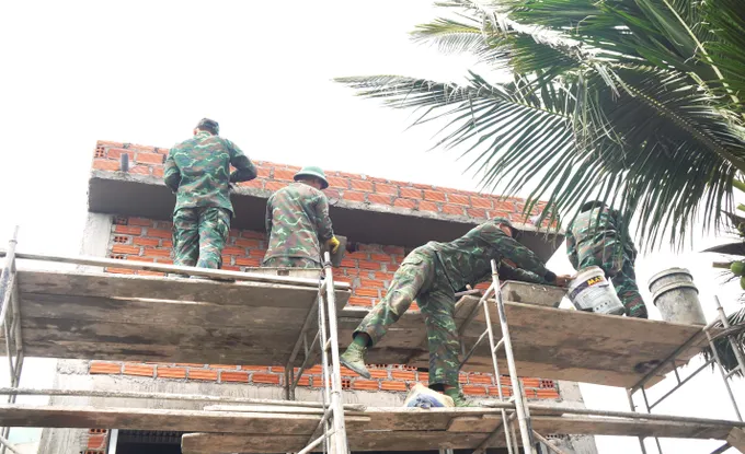 Thiếu tá Lê Thanh Tây, Chính trị viên phó Tiểu đoàn 7, Bộ Tham mưu Quân đoàn 34 chia sẻ, ngay khi nhận nhiệm vụ theo “chiến dịch Quang Trung” do Thủ tướng phát động, đơn vị đã huy động khoảng 50 cán bộ, chiến sĩ, chia thành 6 tổ thợ xây, tham gia xây dựng 8 căn nhà mới tại vùng bão lũ Vinh Quang 2.