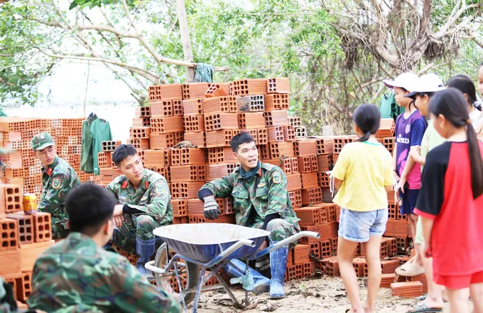 “Một viên đá hộc xây móng ở đất liền chỉ khoảng 4.000 đồng, nhưng ra đến Cồn Chim đội lên 14.000 đồng/viên do chi phí vận chuyển, nhân công. Nhờ có bộ đội hỗ trợ vận chuyển, xây dựng, mỗi căn nhà tiết kiệm được khoảng 150–200 triệu đồng và rút ngắn thời gian thi công từ 1 - 2 tháng”, anh Đức chia sẻ.