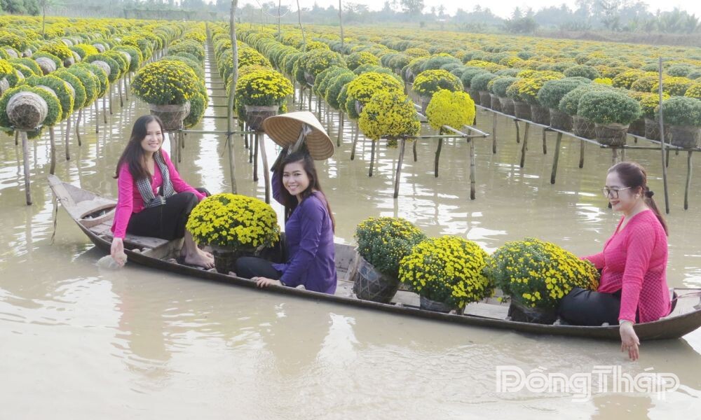 (DTO) What defines the identity of Sa Dec Flower Village is the practice of growing flowers on elevated racks. To adapt to the rising tides of the Tien River, local farmers have innovated a "non-soil-contact" cultivation method, creating a picturesque riverine landscape as they paddle boats to tend to their blooms. From a traditional craft village, Sa Dec has transformed itself into a vibrant "Flower Kingdom."