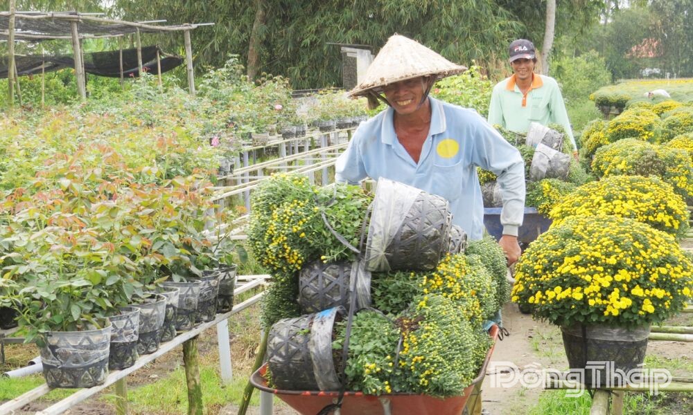 Stretching along the gentle Tien River, Sa Dec Flower Village benefits from fertile alluvial soil and a favorable climate, making it the largest "flower kingdom" in the Mekong Delta.Spanning nearly 1,000 hectares, the craft village maintains its vibrant beauty from dawn till late at night to ensure timely supplies for the Lunar New Year market, thanks to investments in infrastructure and biotechnology.Featuring over 2,000 varieties of flowers and ornamental plants-from traditional Moroccan daisies and marigolds to premium species like Lisianthus and Petunias-all are placed on elevated racks to catch the sun and breeze.Watering and care are meticulously carried out daily to ensure the flowers reach their peak brilliance just in time for the Spring festival.As the Lunar New Year approaches, Sa Dec seems to don a new coat. Pots of Moroccan daisies on elevated racks create a vibrant tapestry of colors.The countryside is filled with the spirit of Spring, with flowers blooming everywhere from main roads to small alleys. Locals utilize every inch of sidewalk and canal banks to display and tend to their blooms.To adapt to the unique riverine environment, residents design elevated racks over the fields, creating a unique landscape where they must paddle boats between the flower rows.The harmony between the soul of the Mekong Delta-represented by conical hats and wooden boats—and the fragrance of countless flowers creates a signature cultural painting and a source of pride for the people of the "Land of Pink Lotuses" every Spring.Boats carrying fresh flowers dock at the wharf, while lines of trucks wait to transport them across provinces and cities, bringing the Spring essence of Sa Dec to every home.