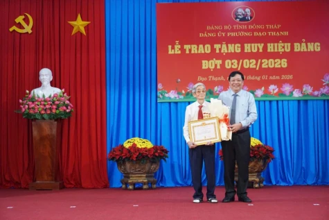 Đồng chí Phạm Thành Ngại trao tặng Huy hiệu Đảng đợt 3-2 tại phường Đạo Thạnh