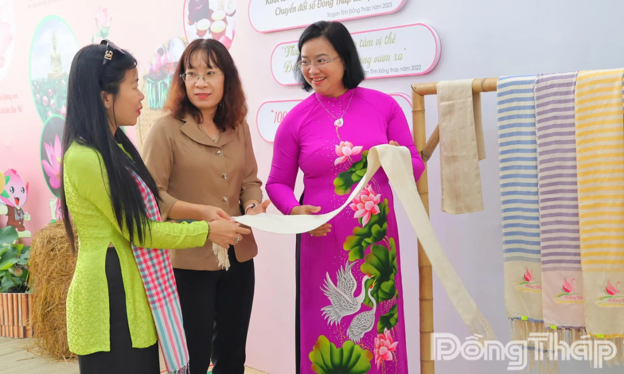 Cũng từ sen, qua bàn tay tài hoa và quá trình tìm tòi, sáng tạo của con người đã cho ra đời nhiều sản phẩm quà tặng đặc sắc, mang tính nghệ thuật, mỹ thuật tinh tế, nâng tầm giá trị sen Đồng Tháp như: Tranh lá sen, lụa tơ sen.